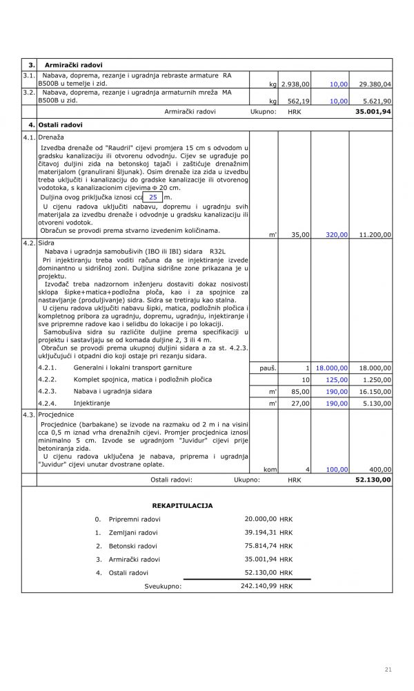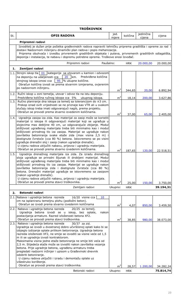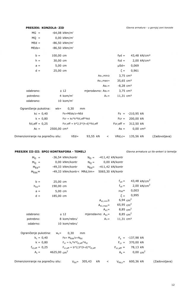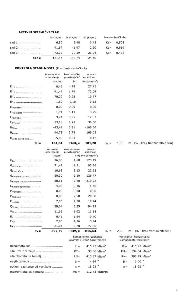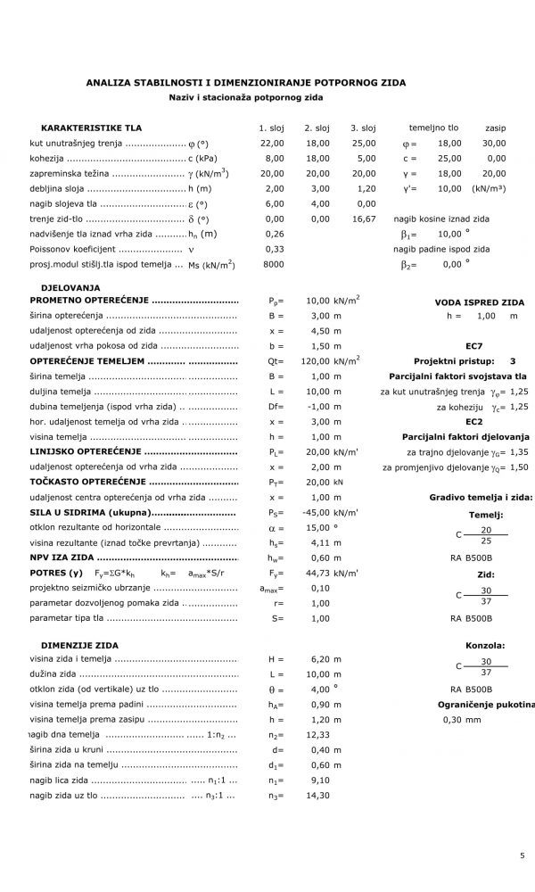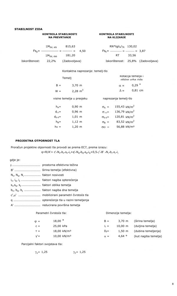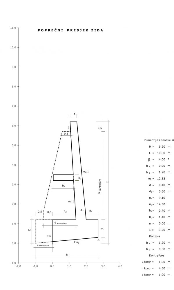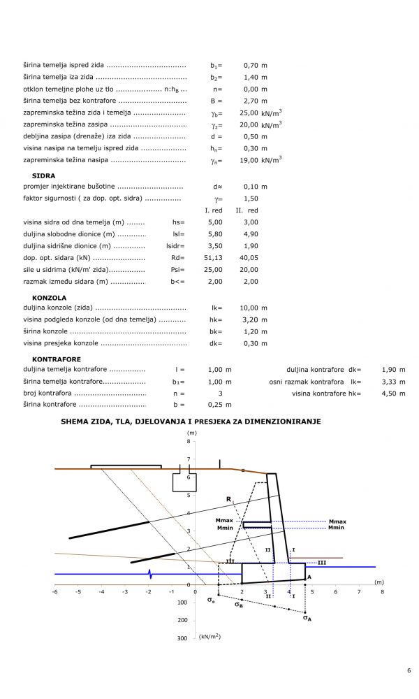 Analize stabilnosti i dimenzioniranja za projektirani Potporni Zid